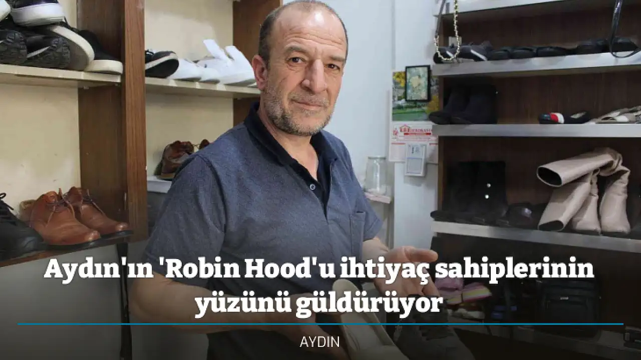 Aydın'da yaşayan ayakkabı tamir ustası Sezer Beytosun (49), kendisini dünyaca ünlü roman kahramanı Robin Hood'a benzeterek dükkanında unutulan ayakkabıları ihtiyaç sahiplerine dağıtıyor.
