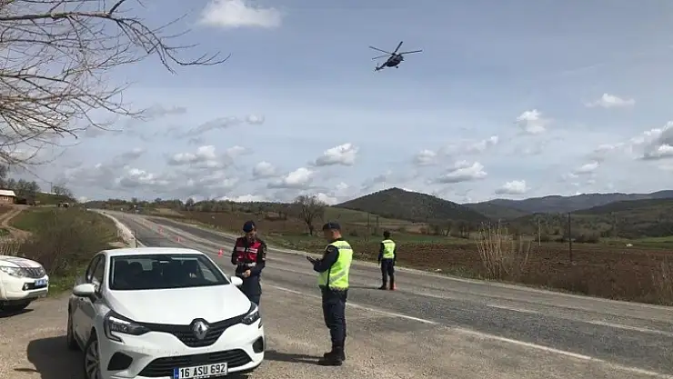 Balıkesir'de jandarma trafik timleri araç yoğunluğu yaşanan anayollarda trafiği helikopter ile havadan denetledi.