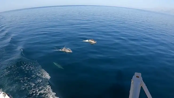 Semadirek ile Limni Adası açıklarında ilerlerken yunus balıklarının tekneye eşlik ettiği görüntüler de izleyenlerin içini ısıttı.