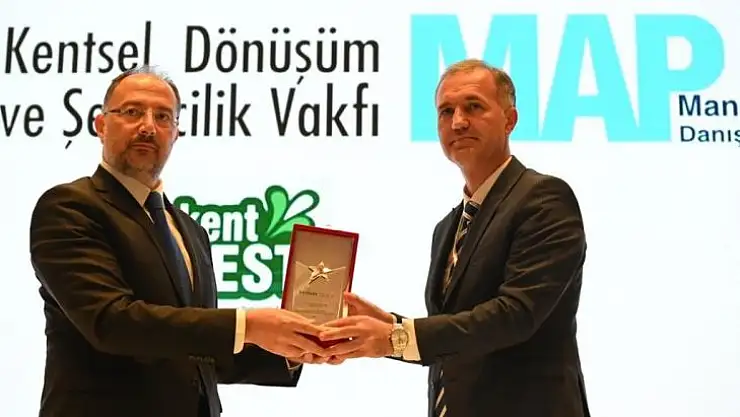 Sunumun ardından Başkan Alper Taban, Kentsel Dönüşüm Projesi ile ilgili ödülü kongreye katılan Çevre ve Şehircilik Bakanlığı Altyapı ve Kentsel Dönüşüm Hizmetleri Genel Müdürü Vedad Gürgen’den aldı.
