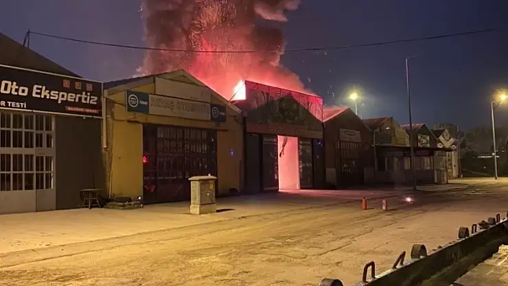 Balıkesir küçük sanayi sitesinde bir iş yerinde meydana gelen yangında alevler geceyi aydınlattı.