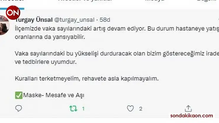 İlçe genelinde yaşanan nüfus hareketliliği ile birlikte vaka sayılarındaki artış sonrasında Edremit Kaymakamı Turgay Ünsal, sosyal medya üzerinden açıklama yaptı. Kaymakam Ünsal, “İlçemizde vaka sayılarındaki artış devam ediyor. Bu durum hastaneye yatış oranlarına da yansıyabilir. Vaka sayılarındaki bu yükselişi durduracak olan bizim göstereceğimiz irade ve tedbirlere uyumdur. Kuralları terk etmeyelim, rehavete asla kapılmayalım” dedi.